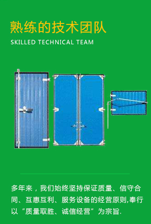 糧庫保溫門采用平開密閉門,其結構為鋼架結構壓迫式。門框,骨架采用冷彎空腹方鋼接而成。面板為0.5mm彩板,內板為鍍鋅板或彩板,面板經特制壓槽成型,內腔填...